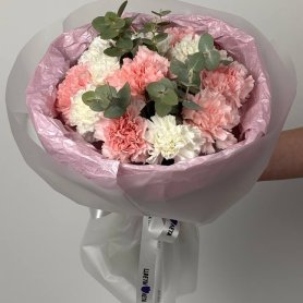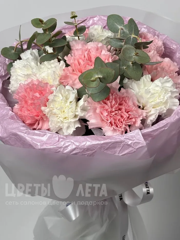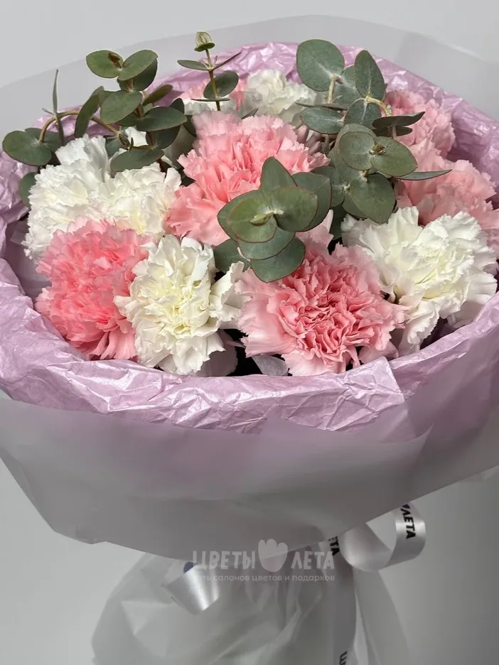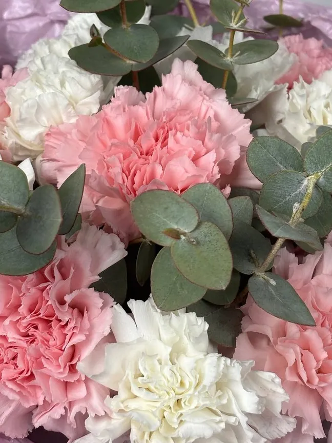 Букет «Ванильный» - это гармоничное сочетание нежно-розовых и кремово-белых гвоздик, создающее ощущение легкости и безмятежности. Словно нежное ванильное мороженое в летний день, этот букет подарит вам радость и хорошее настроение.