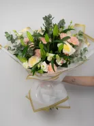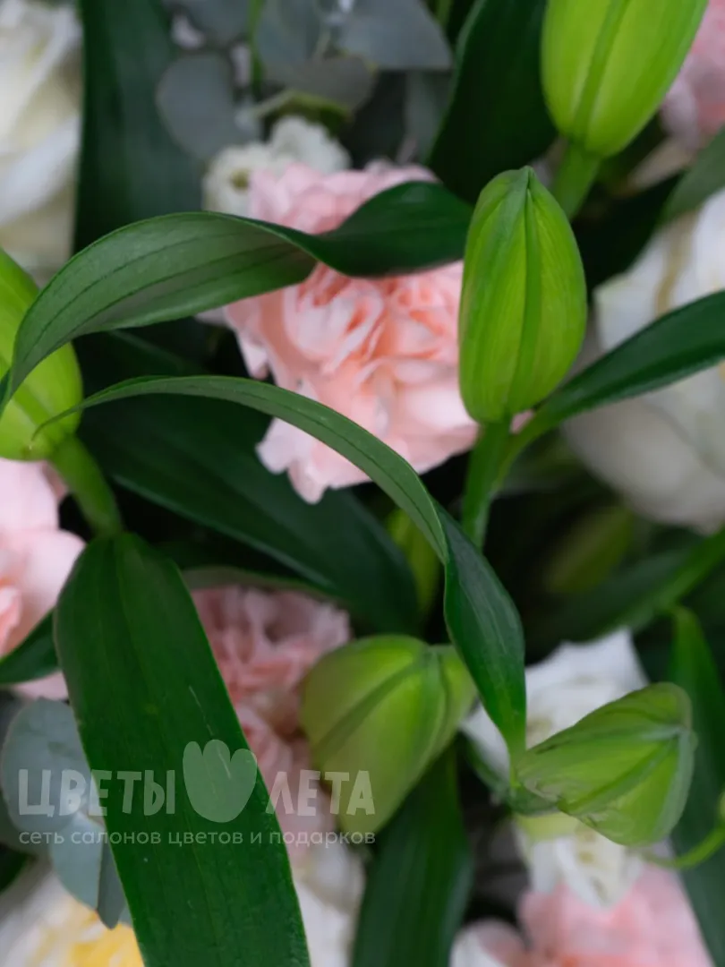Состав букета может незначительно меняться в зависимости от сезонности и наличия цветов. Пожалуйста, уточняйте состав и наличие у наших менеджеров или в социальных сетях.