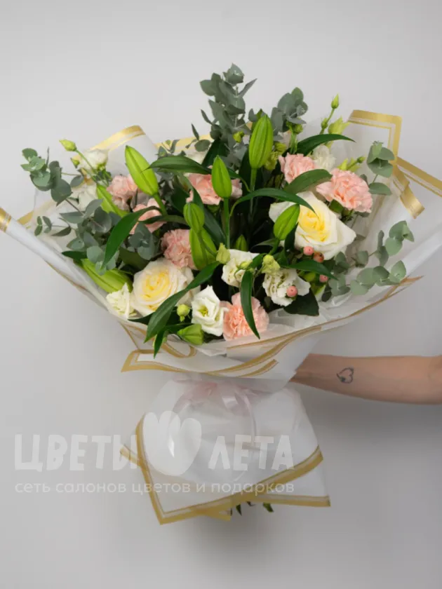 Подарите незабываемый аромат с букетом «Аромат любви»! Пышные лилии в окружении диантусов и роз создают неповторимую атмосферу нежности и страсти. Аромат этого букета наполнит дом теплом и создаст романтическое настроение.