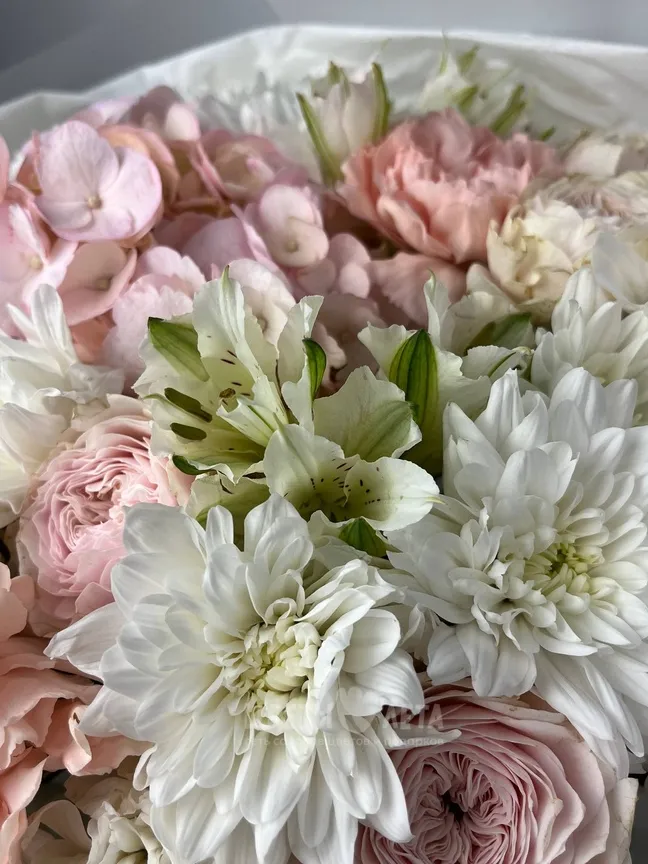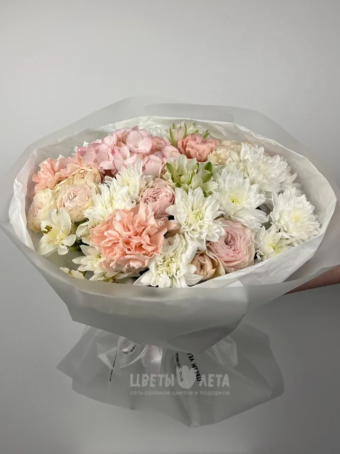 Букет «Пастельная акварель»: нежные оттенки, гармония и утонченность в каждой детали. Состав букета может незначительно меняться в зависимости от сезонности и наличия цветов. Пожалуйста, уточняйте состав и наличие у наших менеджеров или в социальных сетях.