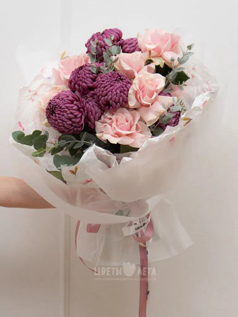 Состав букета может незначительно меняться в зависимости от сезонности и наличия цветов. Пожалуйста, уточняйте состав и наличие у наших менеджеров или в социальных сетях.