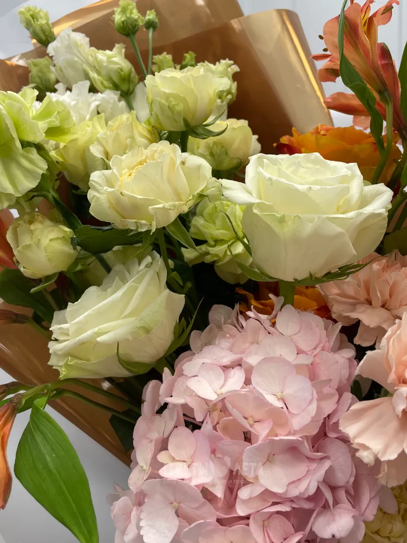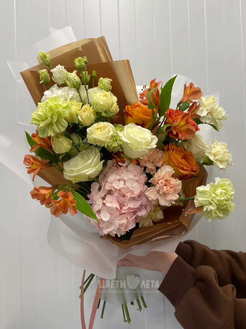 Состав букета может незначительно меняться в зависимости от сезонности и наличия цветов. Пожалуйста, уточняйте состав и наличие у наших менеджеров или в социальных сетях.