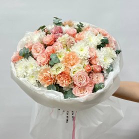 Букет «Ласковое касание» — это воплощение хрупкости и нежности. Словно легкий утренний ветерок или едва уловимое движение руки, он дарит ощущение покоя и искреннего тепла.