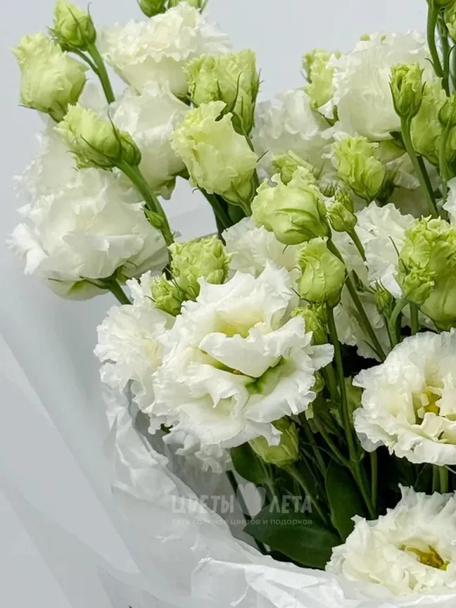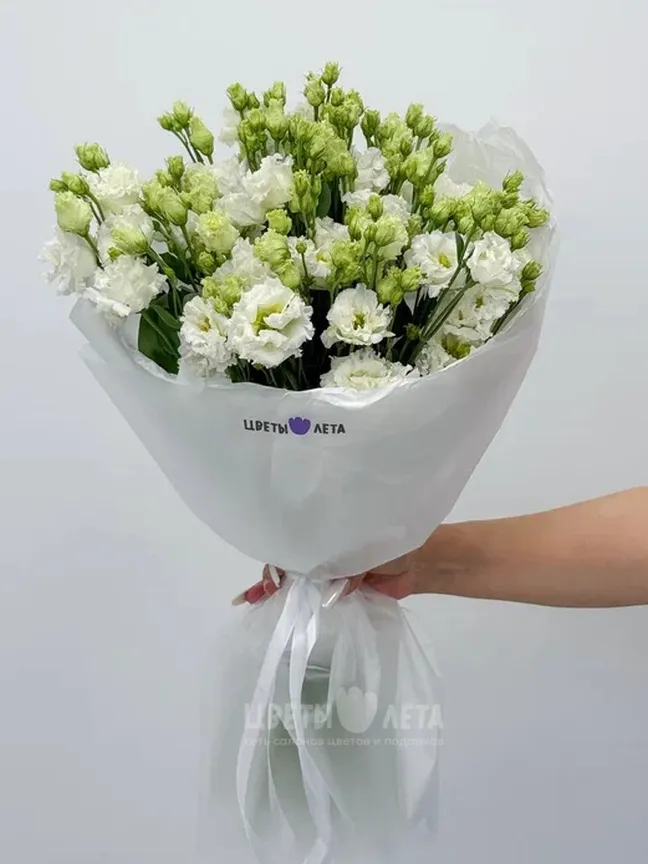Элегантный букет из белой эустомы – это воплощение изысканного вкуса и безупречного стиля. Нежные, словно шелк, цветы грациозно сочетаются в этой композиции, создавая атмосферу роскоши и утонченности. Прекрасный выбор для особых случаев.