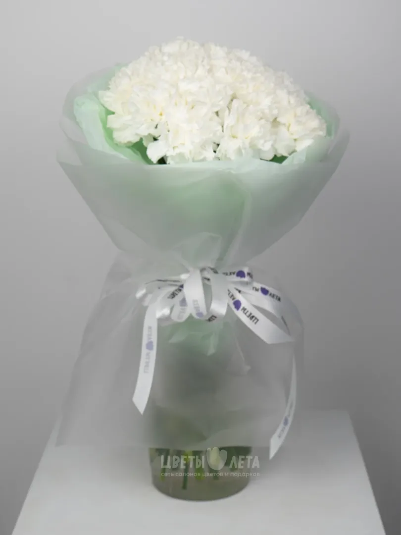 Откройте для себя красоту в простоте с букетом «Белое совершенство»! Белые гвоздики, словно снежинки, завораживают своей чистотой и изяществом. Этот букет – как чистое полотно, на котором можно написать свою историю любви, дружбы или благодарности.