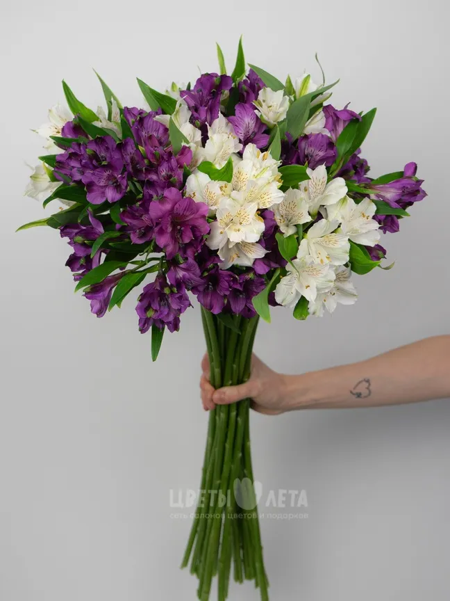 Букет медиум: «Бело-фиолетовый микс альстромерия»