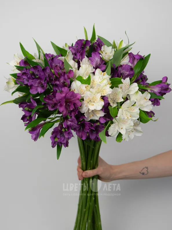 Букет макси: «Бело-фиолетовый микс альстромерия»