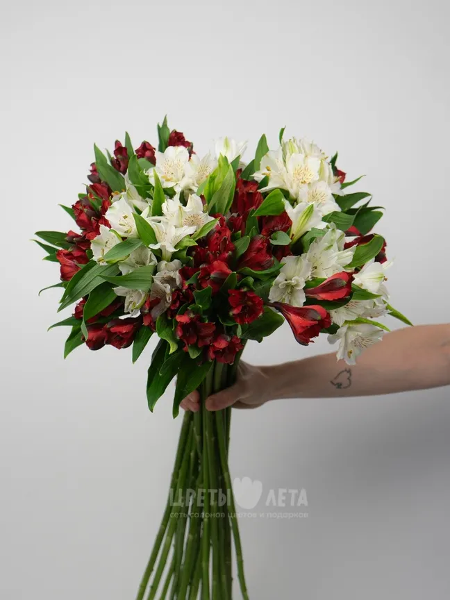 Букет медиум: «Красно-белая Альстромерия»