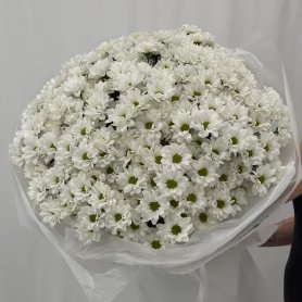 Нежный букет из ромашковой белой хризантемы, излучающий чистоту и свежесть - идеальный способ выразить свои искренние чувства и подарить радость!