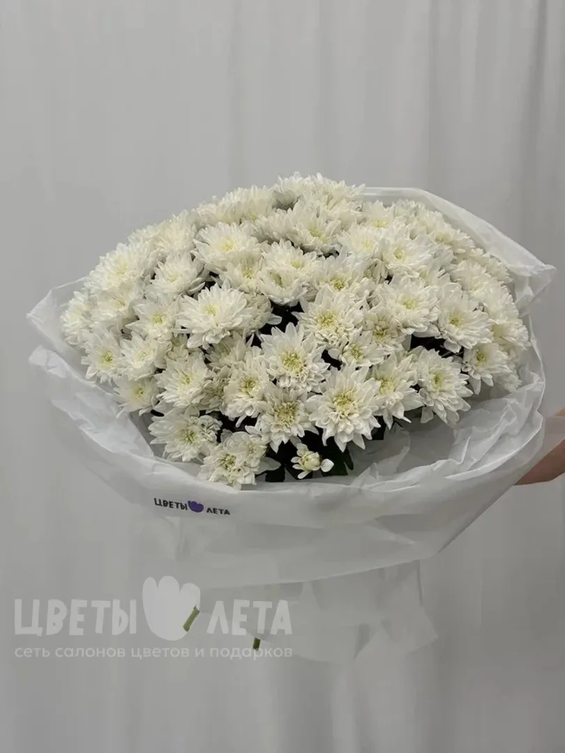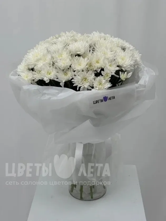 Изысканный букет из белой хризантемы - излучает чистоту и свежесть! Этот элегантный букет станет прекрасным подарком для любого случая, наполняя пространство светом и гармонией!