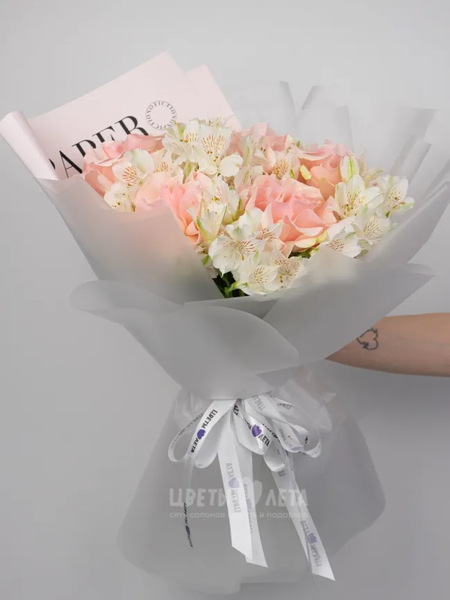 Состав букета может незначительно меняться в зависимости от сезонности и наличия цветов. Пожалуйста, уточняйте состав и наличие у наших менеджеров или в социальных сетях.