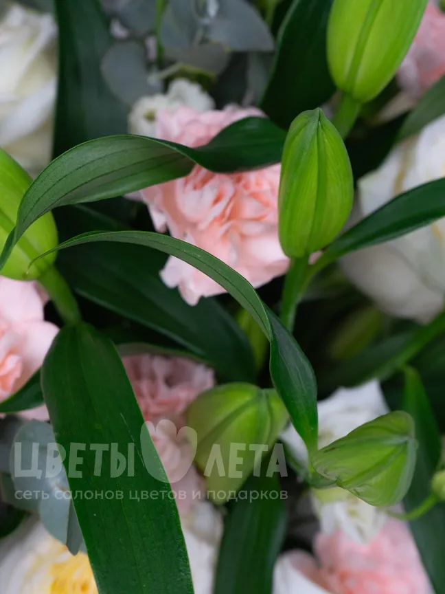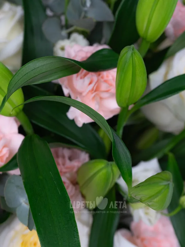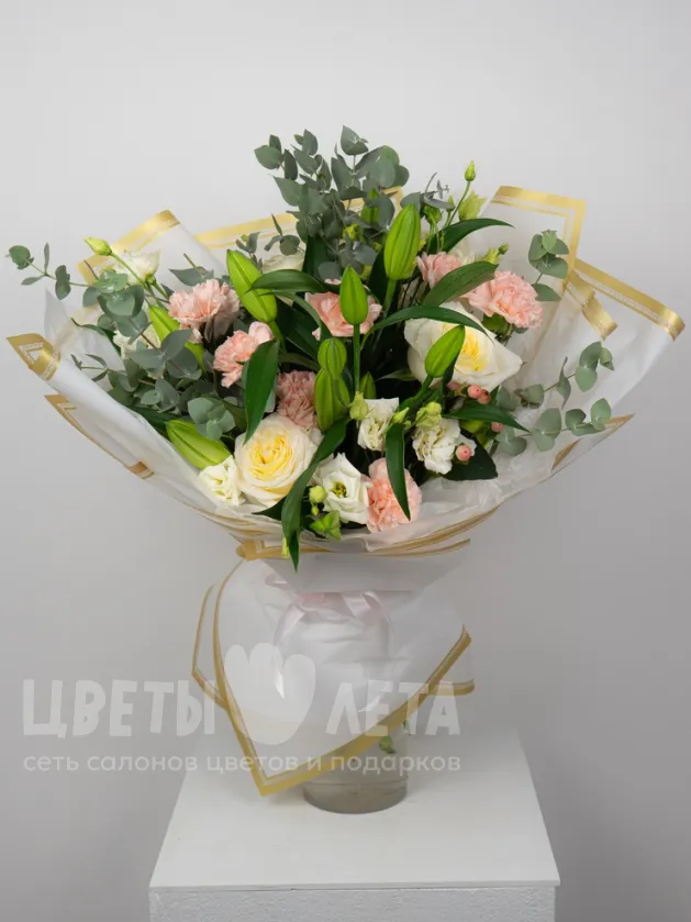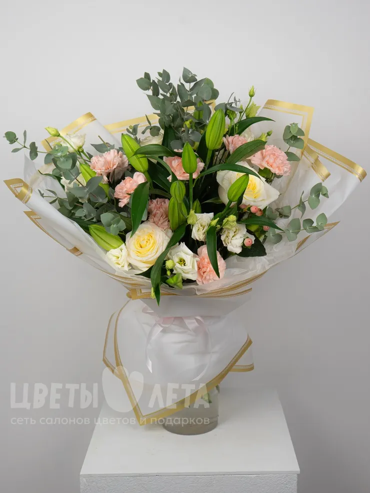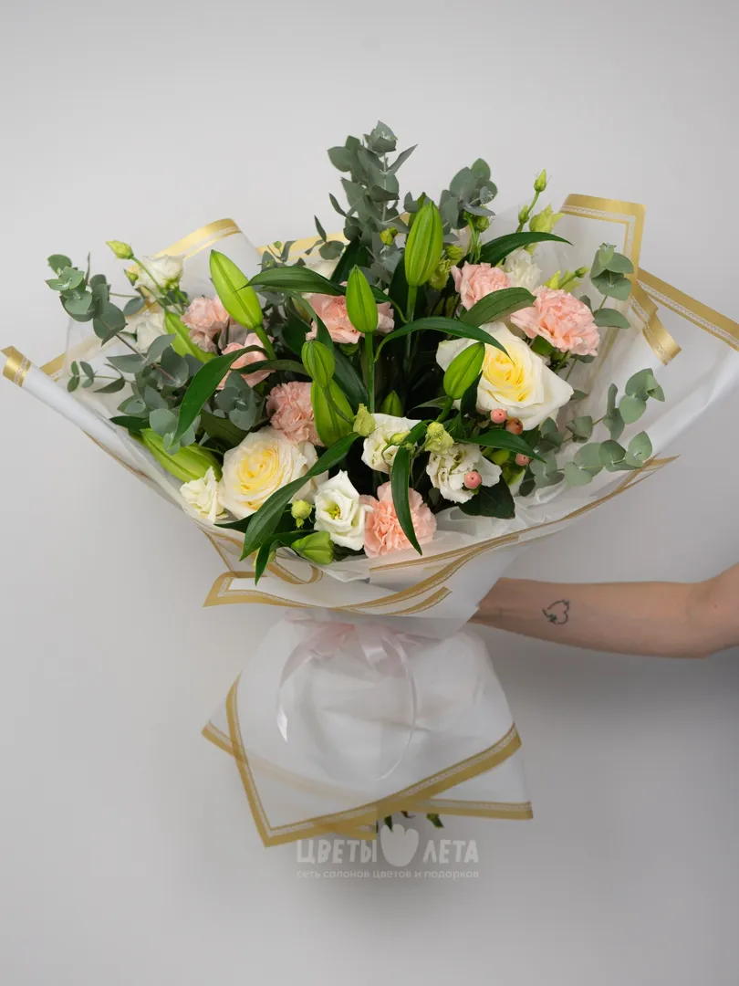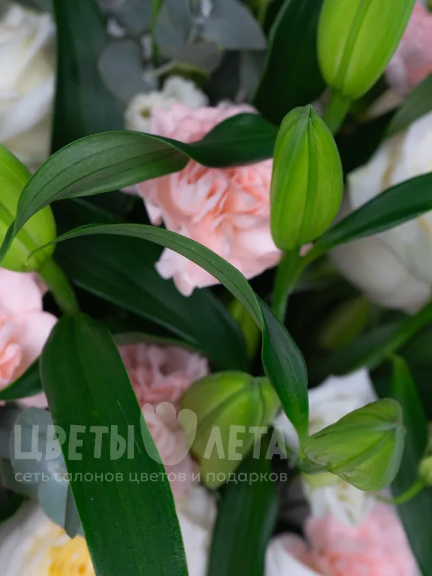 Погрузитесь в чувственный мир ароматов с букетом »Ароматный вальс"! Восхитительная лилия, дополненная нежными диантусами и изящной эустомой, наполнит пространство чарующим благоуханием. Эта композиция – не только визуальное наслаждение, но и настоящий эликсир для души, способный вызвать самые прекрасные воспоминания. Состав букета может незначительно меняться в зависимости от сезонности и наличия цветов. Пожалуйста, уточняйте состав и наличие у наших менеджеров или в социальных сетях.