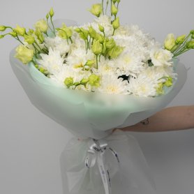 Букет «Белоснежный дуэт» – это гармоничное сочетание белой эустомы и хризантемы. Цветы отличаются пышными бутонами, нежным ароматом и высокой стойкостью. Букет станет прекрасным подарком для тех, кто ценит красоту и изысканность.