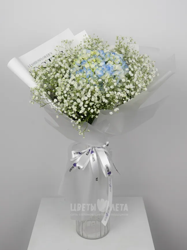 Погрузитесь в мир волшебства и тайн с букетом «Зачарованный сад»! Небесно-голубая гортензия и белоснежная гипсофила, словно цветы из сказки, создают атмосферу загадочности и очарования. Этот букет – как портал в другой мир, где живут мечты и сбываются желания.