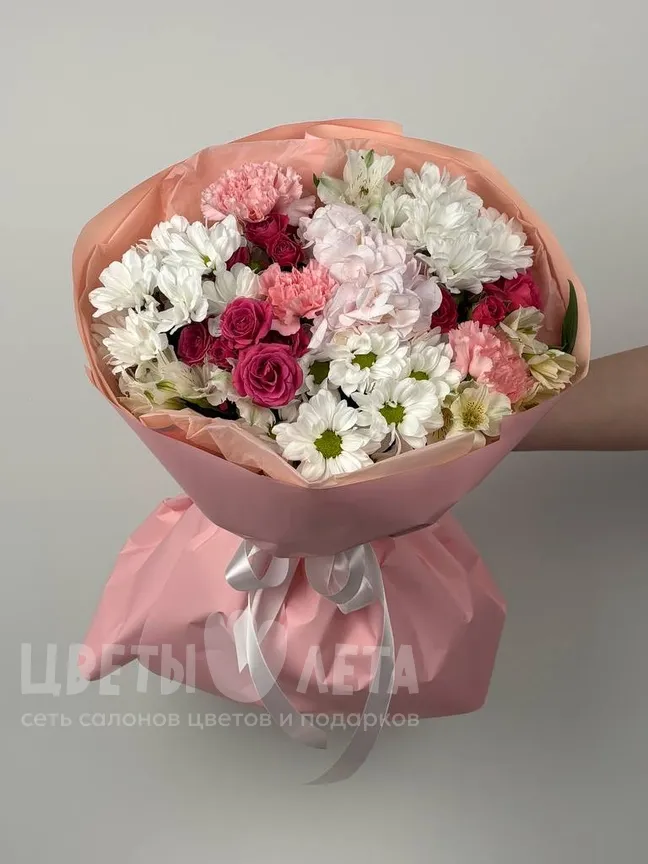 Состав букета может незначительно меняться в зависимости от сезонности и наличия цветов. Пожалуйста, уточняйте состав и наличие у наших менеджеров или в социальных сетях.