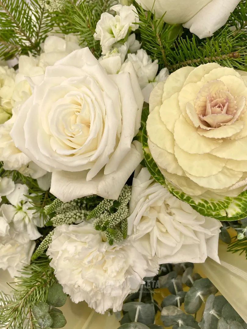 Состав может незначительно меняться, в зависимости от поставок и сезонности цветов, поэтому актуальное наличие уточняйте пожалуйста у менеджеров или в соцсетях.