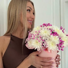 Почувствуйте нежность прикосновения с композицией «Мозаика»! Сочетание белоснежных хризантем и нежно-розовой гипсофилы создает атмосферу легкости, умиротворения и словно переносит вас в мир грез. Идеальный подарок, чтобы выразить свою заботу и самые теплые чувства к близким.