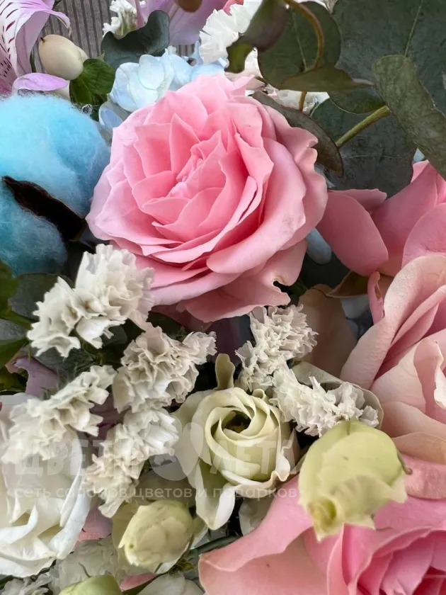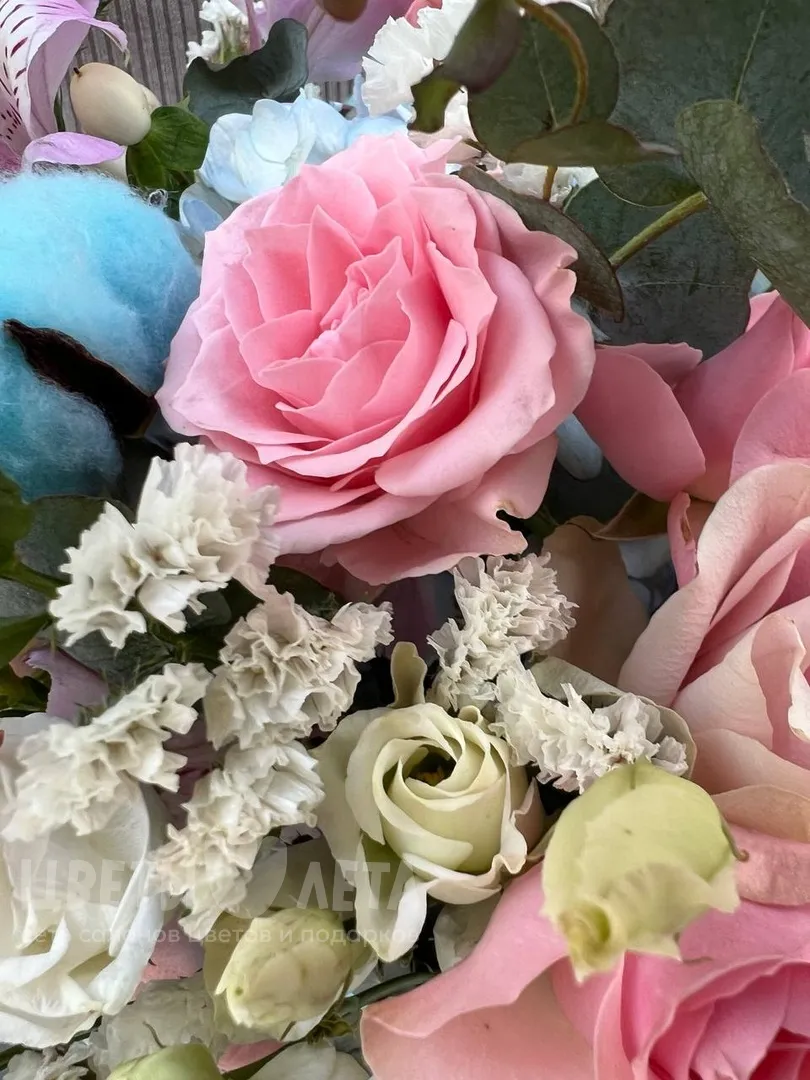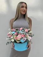 Состав композиции может незначительно меняться в зависимости от сезонности и наличия цветов. Пожалуйста, уточняйте состав и наличие у наших менеджеров или в социальных сетях