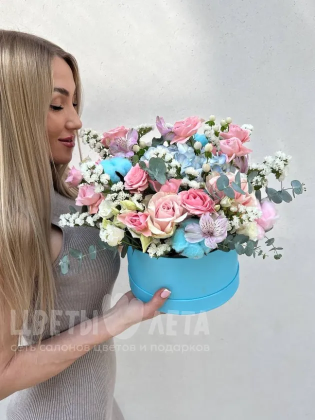окорите сердце необычным сочетанием красок с нашей композицией «Рассвет над морем» ! Голубые и розовые цветы – это редкое и волшебное сочетание, которое никого не оставит равнодушным. Этот подарок – для тех, кто любит удивлять и ценит оригинальность.