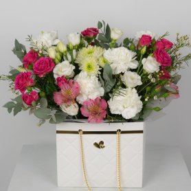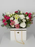 Состав композиции может незначительно меняться в зависимости от сезонности и наличия цветов. Пожалуйста, уточняйте состав и наличие у наших менеджеров или в социальных сетях.