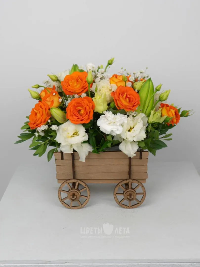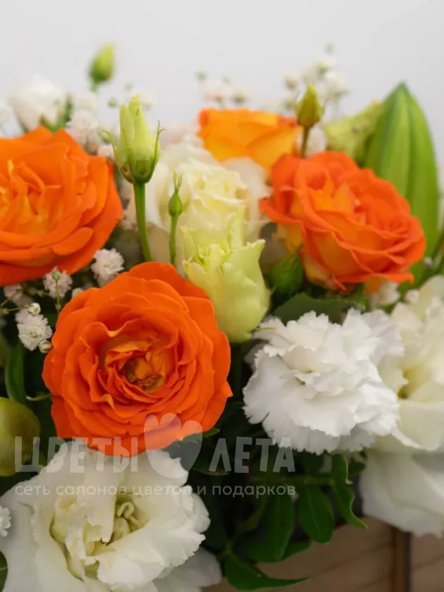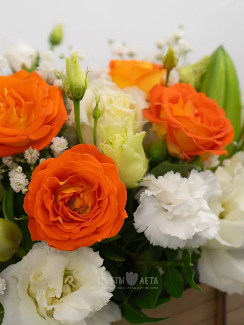 Состав композиции может незначительно меняться в зависимости от сезонности и наличия цветов. Пожалуйста, уточняйте состав и наличие у наших менеджеров или в социальных сетях.