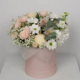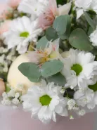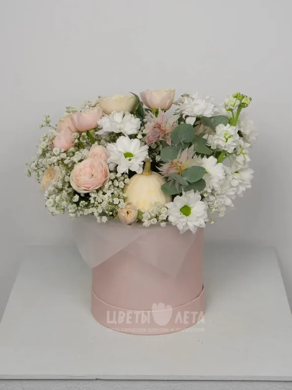 Состав композиции может незначительно меняться в зависимости от сезонности и наличия цветов. Пожалуйста, уточняйте состав и наличие у наших менеджеров или в социальных сетях.