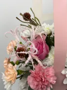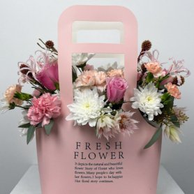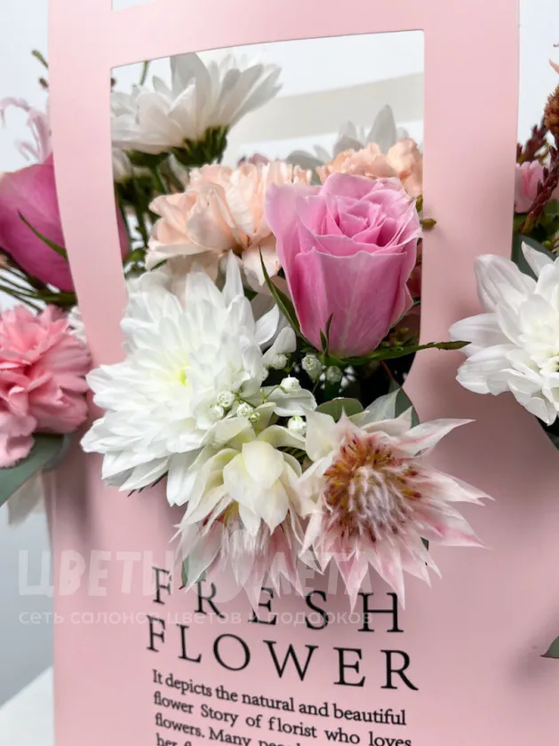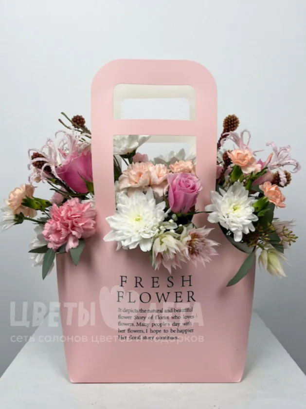 Состав композиции может незначительно меняться в зависимости от сезонности и наличия цветов. Пожалуйста, уточняйте состав и наличие у наших менеджеров или в социальных сетях.