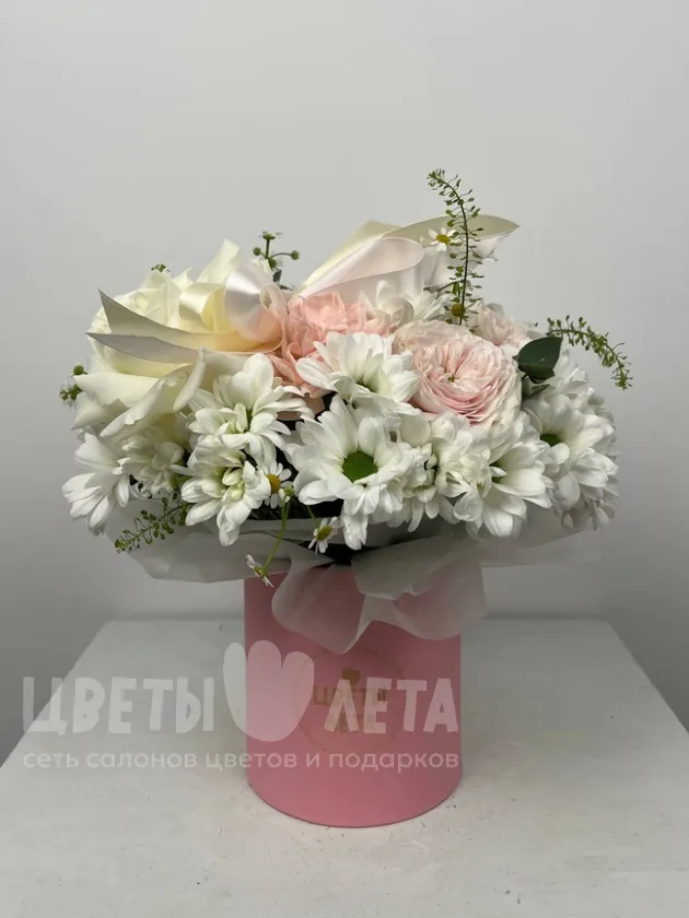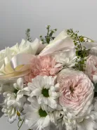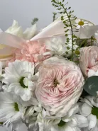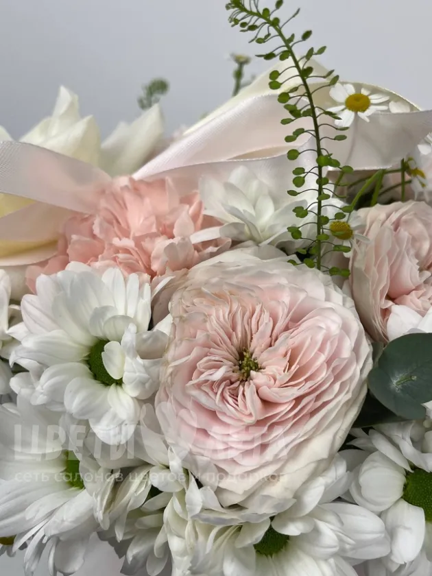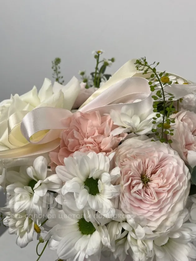 Состав композиции может незначительно меняться в зависимости от сезонности и наличия цветов. Пожалуйста, уточняйте состав и наличие у наших менеджеров или в социальных сетях.
