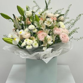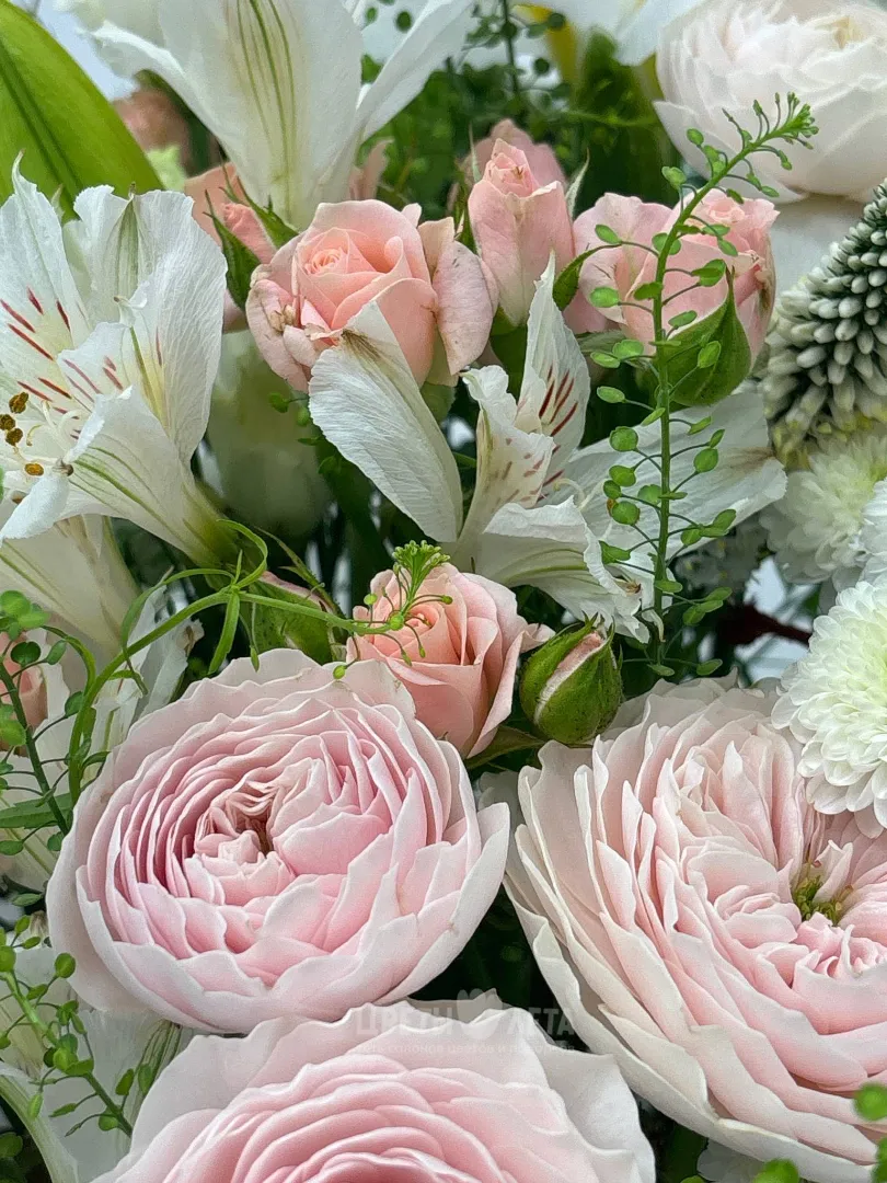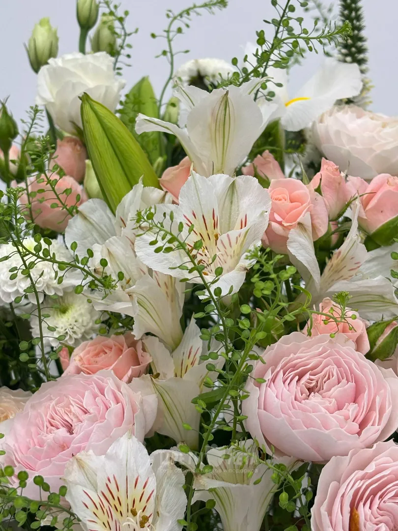 Выразите свои самые искренние чувства с помощью композиции «Симфония чувств»! Эта композиция – словно нежная мелодия, которая расскажет о вашей любви, восхищении и заботе. Состав композиции может незначительно меняться в зависимости от сезонности и наличия цветов. Пожалуйста, уточняйте состав и наличие у наших менеджеров или в социальных сетях.
