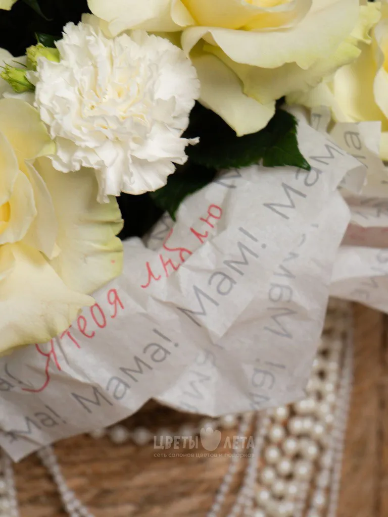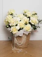 Выразите свою глубокую любовь и уважение к маме с композицией «Жемчужная Элегантность». Это не просто цветы, это жемчужное сияние самых искренних чувств, воплощенное в деликатных белых бутонах. Подарите ей момент чистой красоты и нежности.