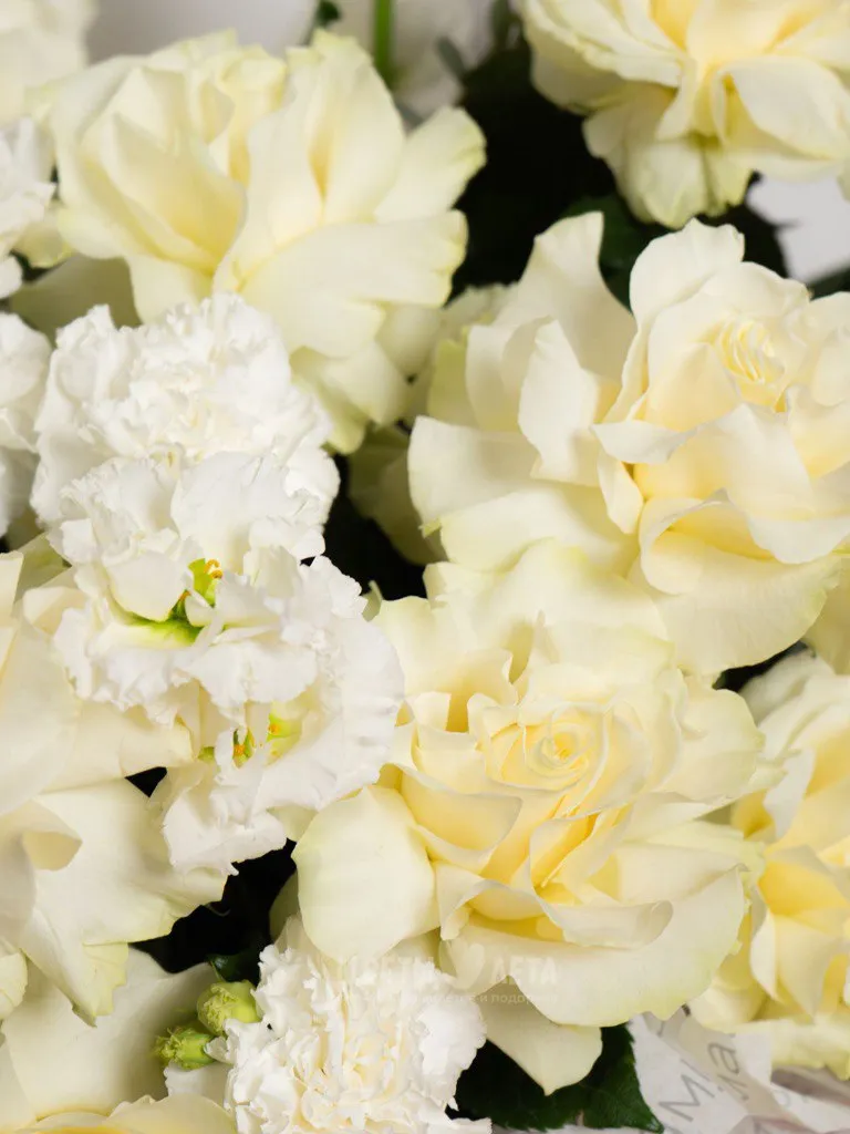 Состав композиции может незначительно меняться в зависимости от сезонности и наличия цветов. Пожалуйста, уточняйте состав и наличие у наших менеджеров или в социальных сетях.