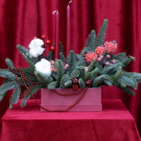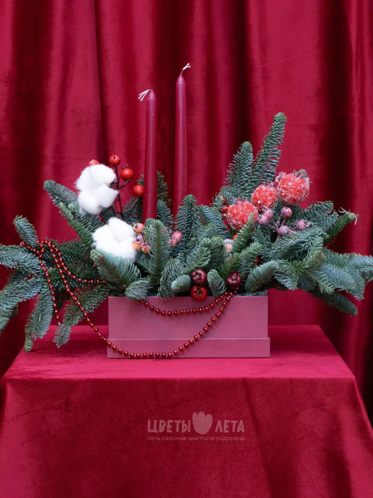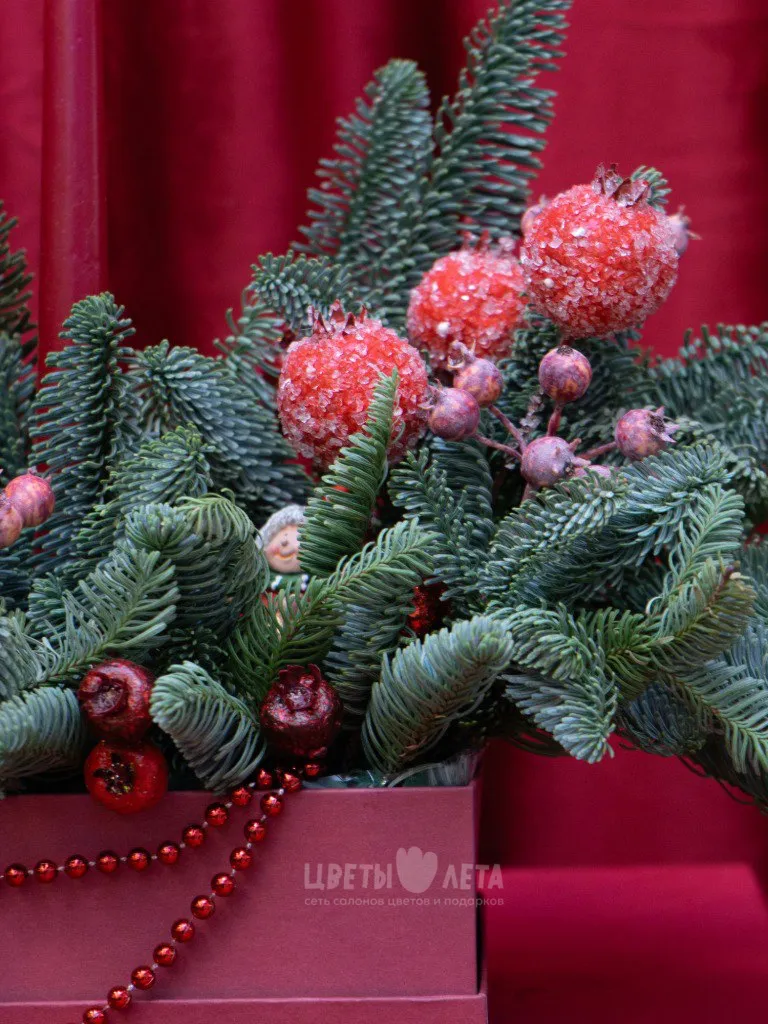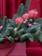 Создайте волшебную атмосферу праздника с нашими уникальными новогодними композициями. Каждая из них – это произведение искусства, сочетающее свежесть еловых веток и сияние новогодних игрушек.