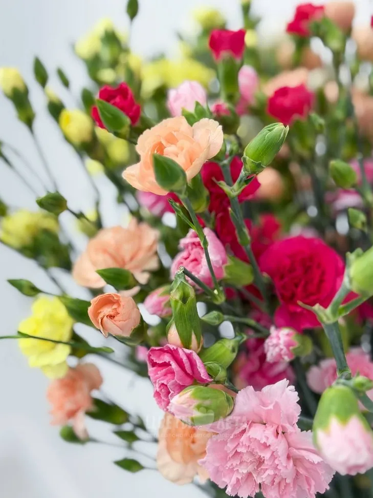 Кустовая гвоздика – универсальный цветок для любого случая! От нежных пастельных до ярких насыщенных оттенков – создайте свой идеальный букет!