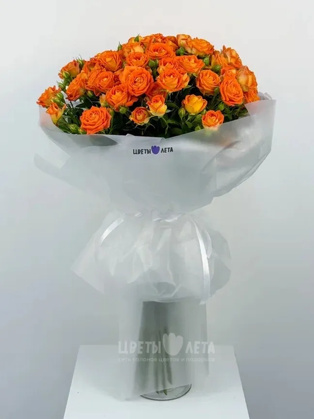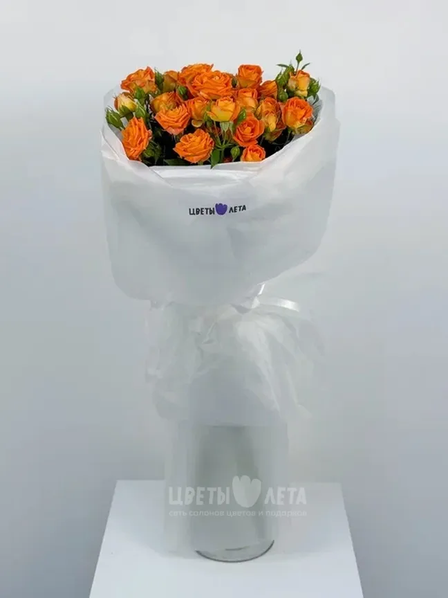 Этот букет - словно воплощение летнего заката! Теплые оранжевые оттенки кустовых роз наполнят ваш дом атмосферой уюта и гармонии. Подарите его тому, кто дорог вашему сердцу, и пусть этот солнечный букет станет символом вашей любви и заботы!